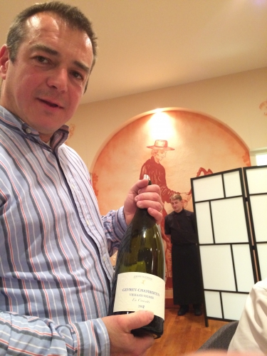 En trois plats magistraux, servis à 240 personnes, il a démontré toute la splendeur d'une cuisine savoureuse, avec une mention particulière pour cette entrée végétarienne "Cuit-cru légumier en terre", à faire se damner le plus vorace des carnassiers. Quant à la farce qui garnissait ce magnifique chou portion, il fallait croquer dedans pour la découvrir... et la savourer! Côté vin pour accompagner le tout, après des débuts timides, ce fut l'explosion. Quelques brefs souvenirs de bouteilles marquantes et/ou plutôt rares, en images...