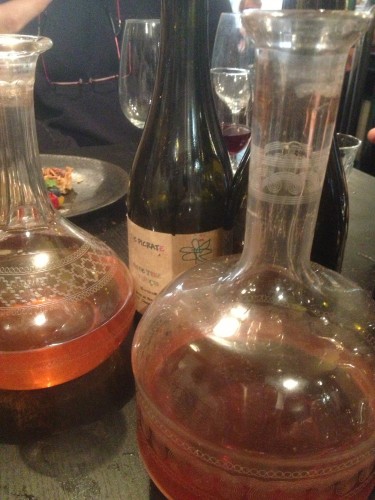 Pour ce qui est des vins, la carte, résolument novatrice au départ, a dû subir quelques modifications pour s'adapter à tous les goûts et toutes les bourses. À côté de la sélection initiale, effectuée par Stéphane Planche, des Jardins de Saint-Vincent, quelques bouteilles passe-partout ont réussi à se glisser, pour contenter les amateurs de Bordeaux du dimanche, y compris les cadets. Mais boire une Tranche de Jambon, avec son carré d'agneau ou son épaule de cochon du Larmont, voilà qui réjouit le palais et le cerveau. Un vin qui a d'la gueule!